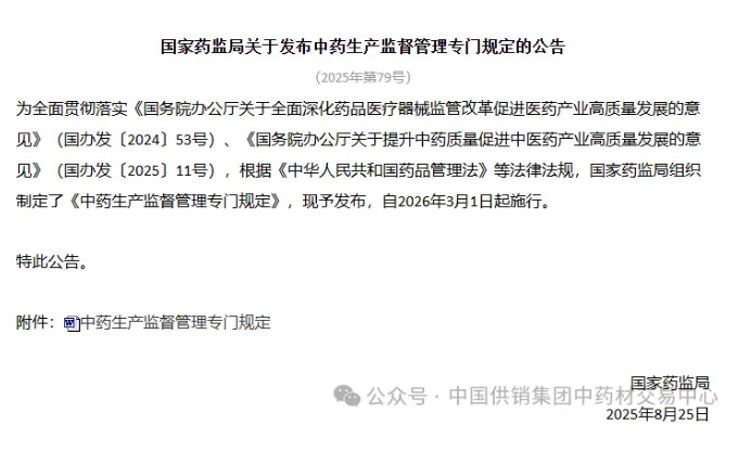 ▪ 国家药监局79号文件重塑中药材行业生态2025-10-11