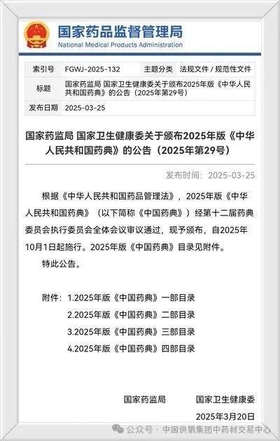 近日,国家药典委员会正式发布了2025年版《中华人民共和国药典》,这是我国药品标准体系建设的重要里程碑。新版药典于2025年10月1日起正式实施,为医药行业高质量发展提供新的技术支撑。